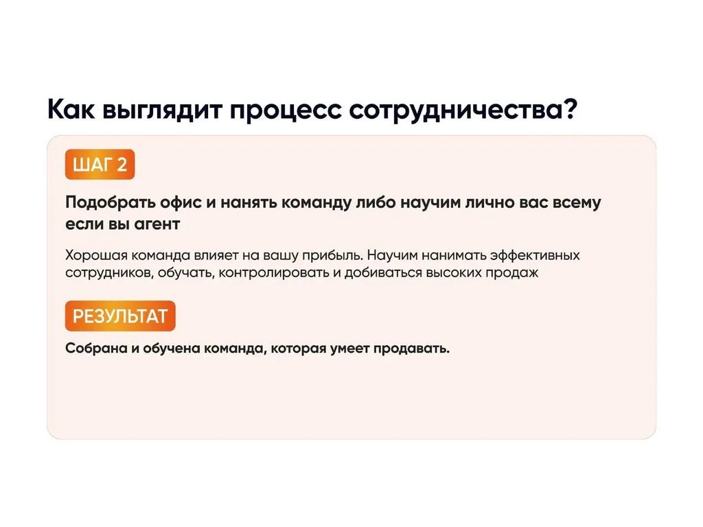 - Обучение: Обучение ведению бизнеса, продукту, общению с клиентами и работе персонала.