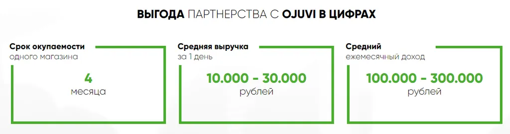 Франшиза Ojuvi EAU De Parfum предлагает следующие условия: