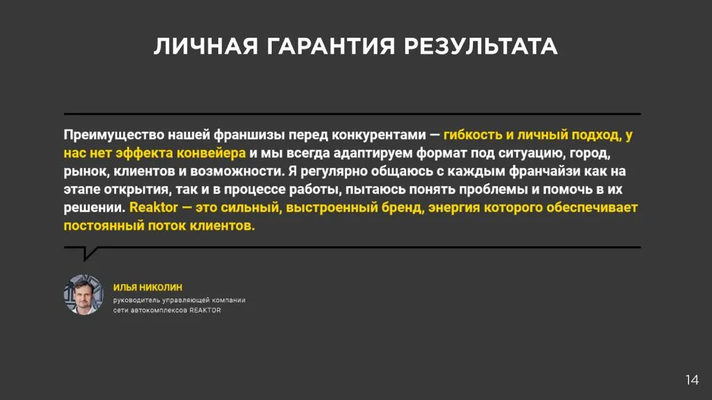 • 👨‍🏫 Обучение и поддержка: франчайзи проходят обучение в учебном центре REAKTOR, где работают по современным программам для автосервисов.