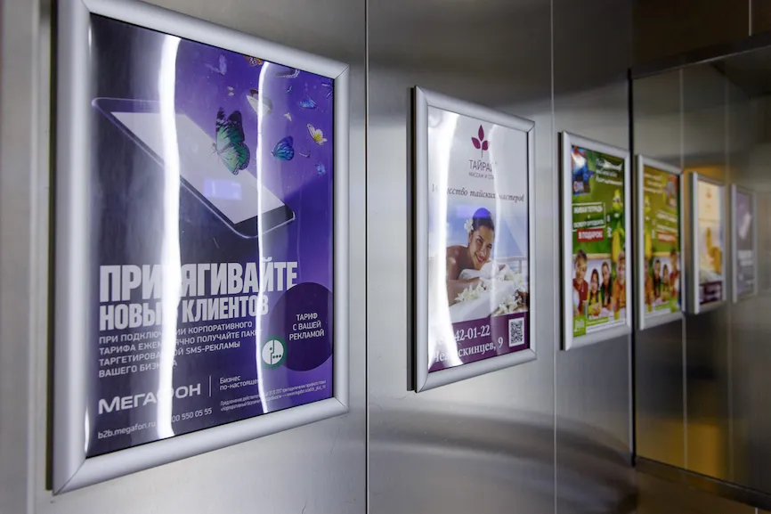 - Нестандартный формат рекламы: Реклама в лифтах бизнес-центров привлекает внимание благодаря частому контакту с целевой аудиторией.