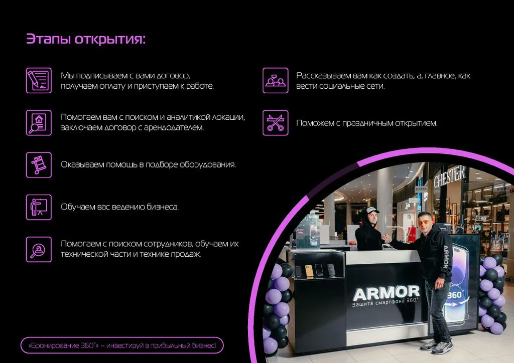 Франшиза Armor — это возможность открыть фирменный островок в ТЦ и зарабатывать до 260 000 рублей в месяц. 💰