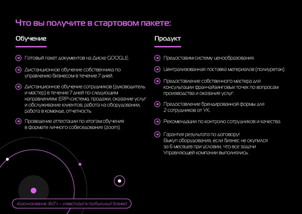 Мы предлагаем обучение как в очном, так и в дистанционном формате. Основной курс длится 7 дней, в течение которых вы узнаете все тонкости ведения бизнеса, работы с клиентами и продажами. 🎓