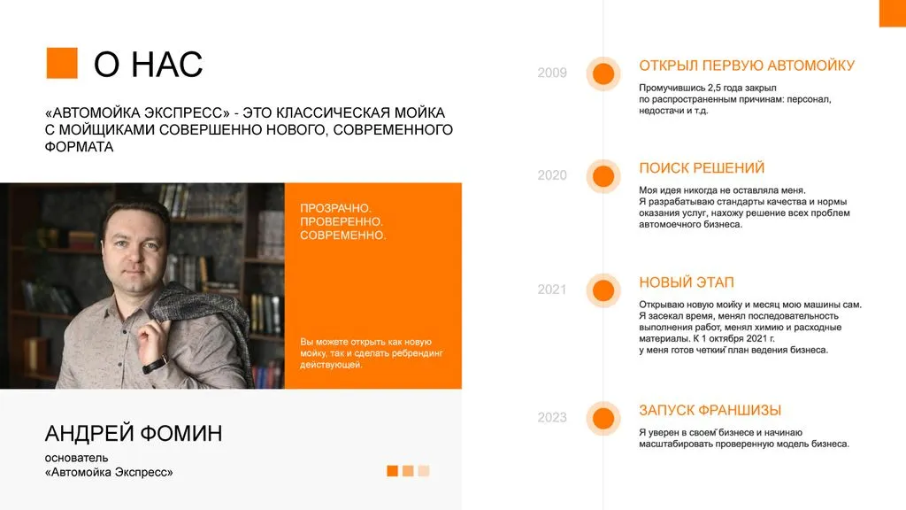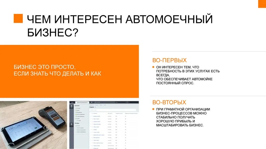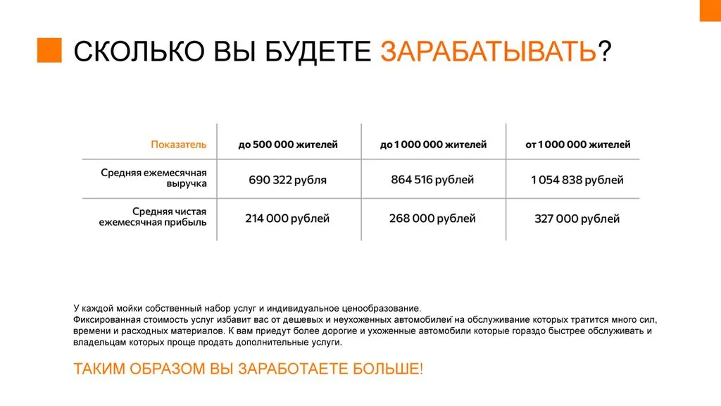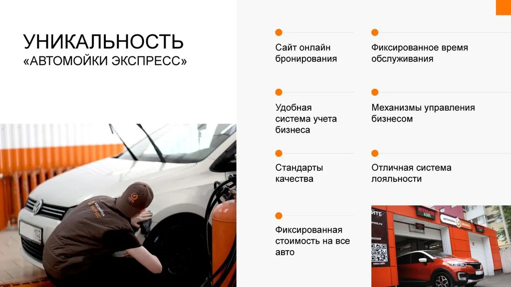 - Прозрачный бизнес с понятной моделью, решающей классические проблемы автомоек.