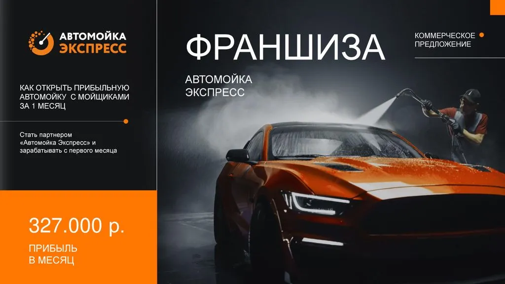 Франшиза «Автомойка Экспресс» - это возможность открыть автомойку нового формата и зарабатывать от 200 000 рублей чистой прибыли в месяц. 💰