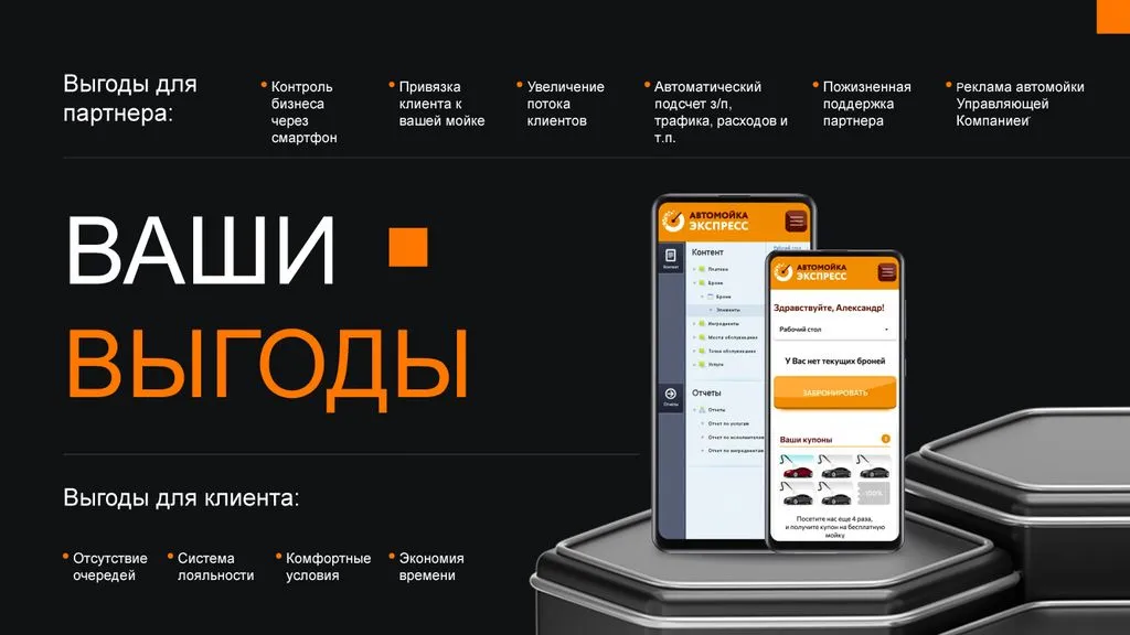 Так появился бренд «Автомойка Экспресс», и сегодня наша сеть насчитывает 19 автомоек в разных городах. Клиенты бронируют услуги через сайт, а мойщики работают по стандартам, укладываясь в нужное время и сохраняя качество. Владелец бизнеса управляет всем с помощью смартфона. 📱