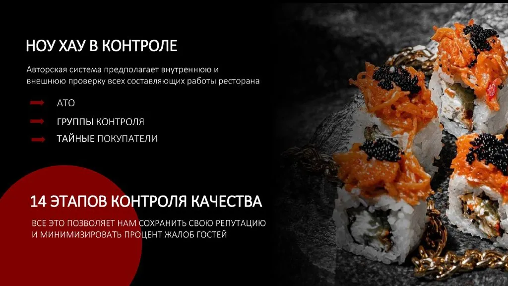 Наша система контроля включает 14 этапов, начиная с приготовления блюд и заканчивая их доставкой клиентам. 👨🍳 Это помогает нам сохранять высокое качество и предлагать рекомендации для повышения прибыли вашей точки.