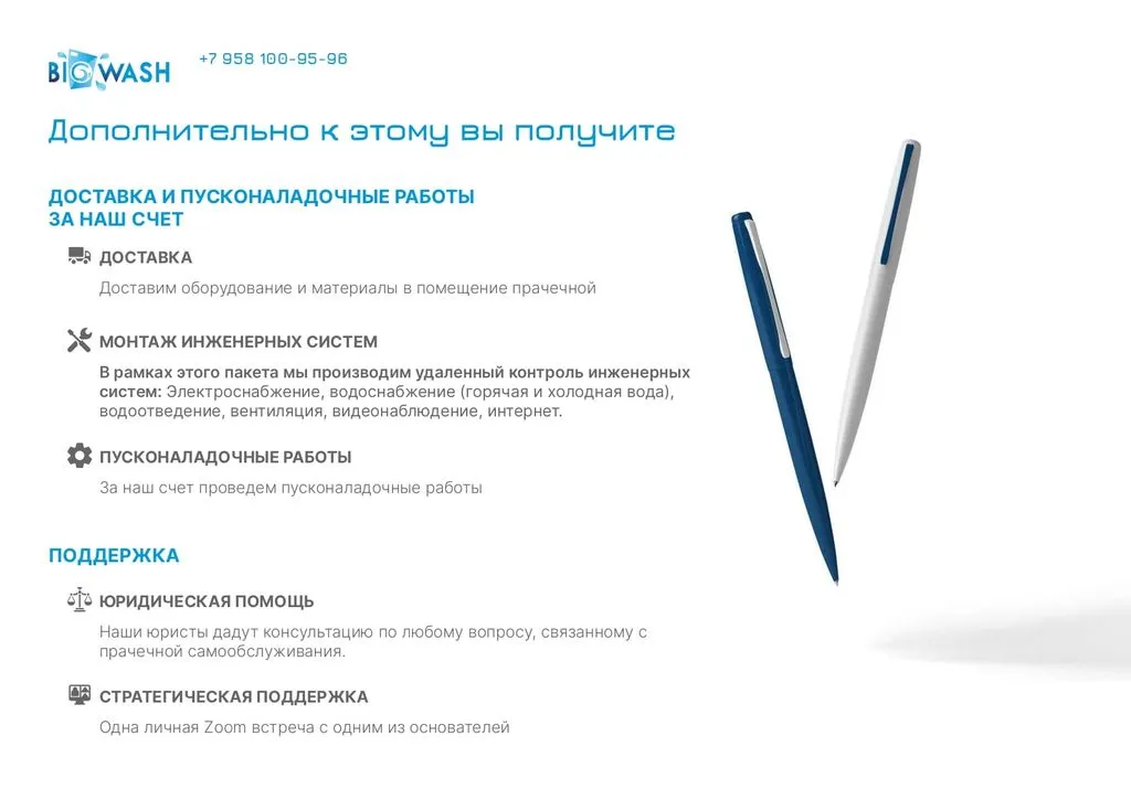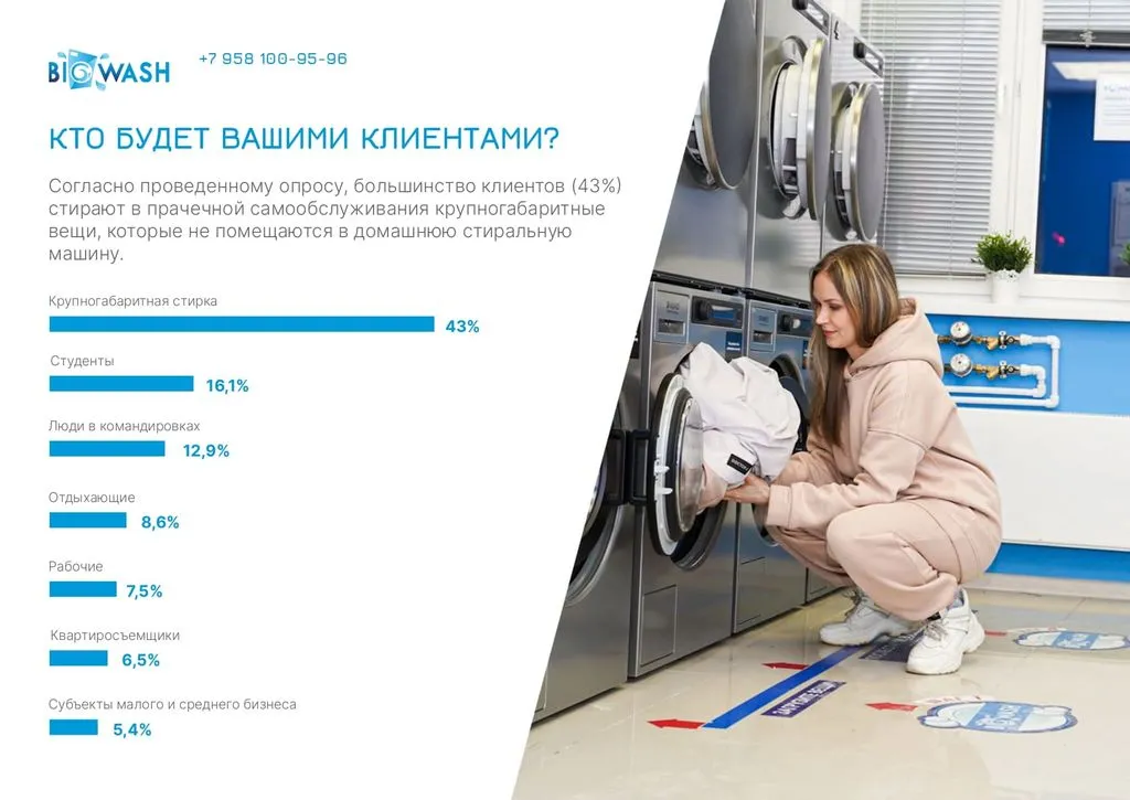 Запуск франшизы занимает от одного до двух месяцев: после подписания договора вы получаете доступ к базе знаний, оборудование и личного куратора. Открытие прачечной – это всего 1-2 месяца работы 💼.