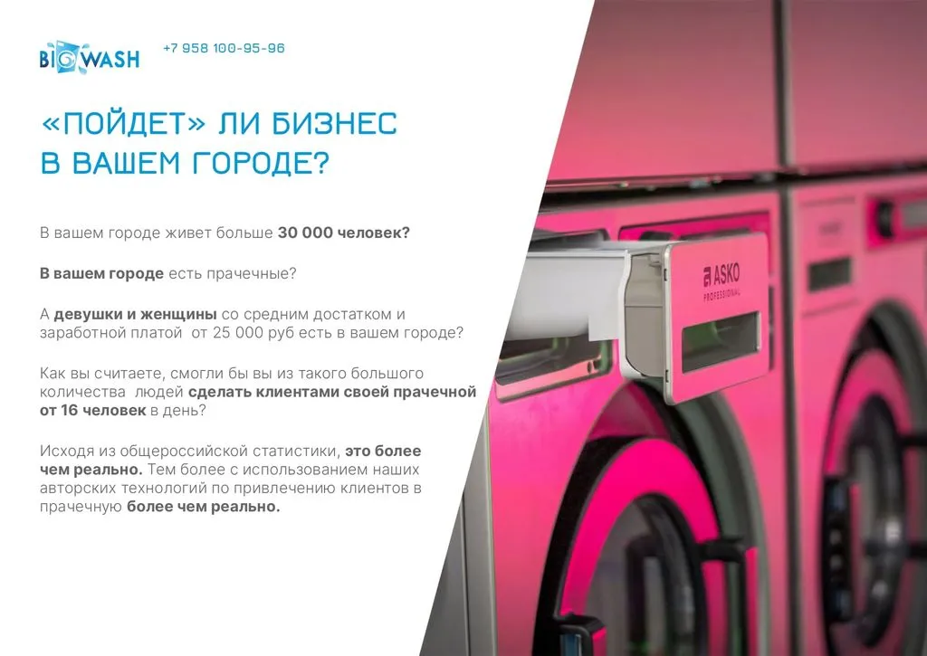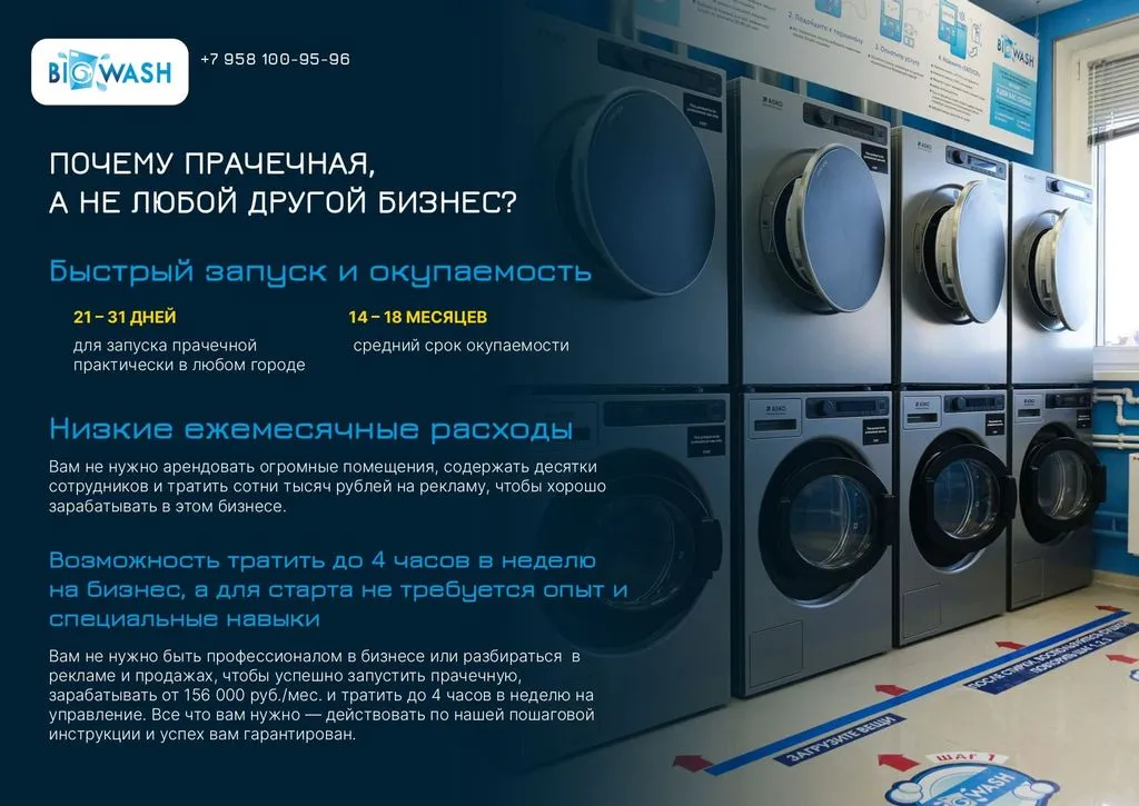 Франшиза Big Wash – это запуск прачечной самообслуживания с нуля при поддержке нашей команды 💡.