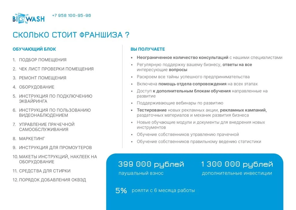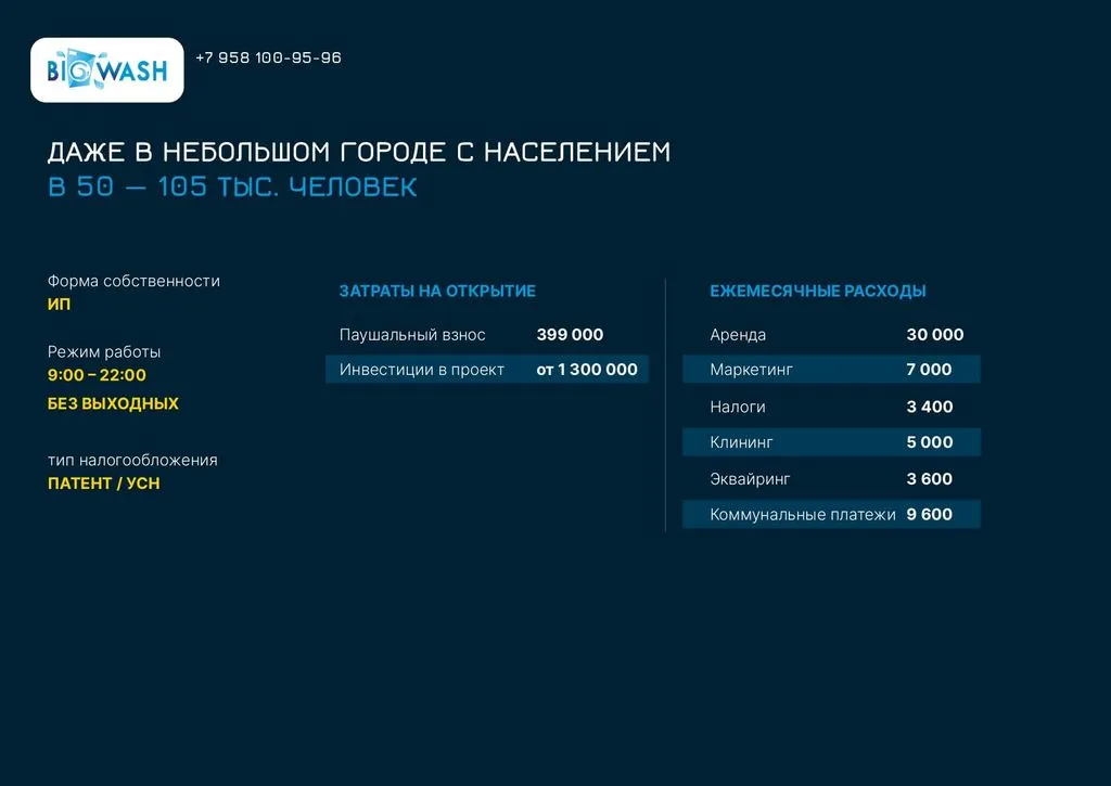 Мы предлагаем различные форматы франшизы – от самостоятельного старта до полного сопровождения командой специалистов, что делает Big Wash выгодным бизнесом даже для новичков 🔑.