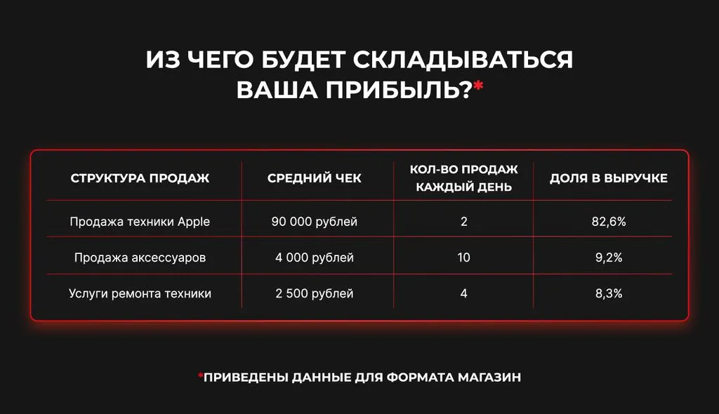 Пример расчёта прибыли франшизы Bit:Store