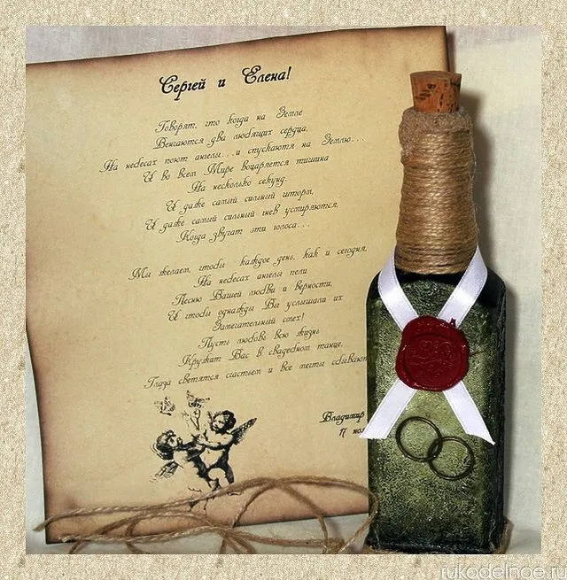 - Письмо пишется от руки или печатается, упаковывается в стильную стеклянную бутылку 🖋️🍾.