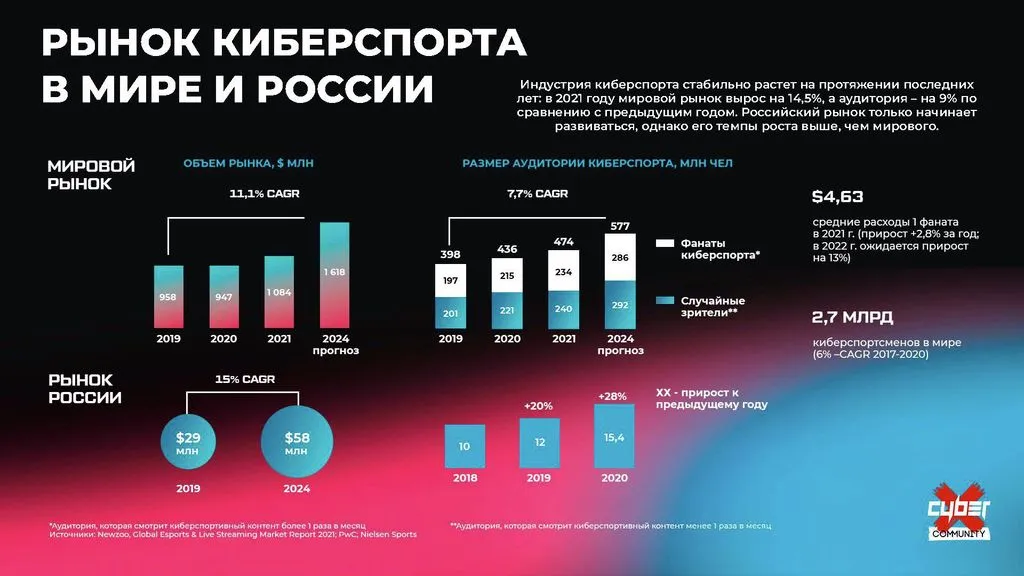 - 💰 1,1 млрд долларов — объем рынка киберспорта.
