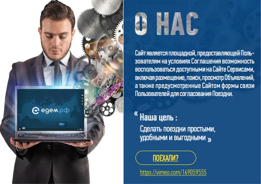 Едем.РФ — это компания, которая специализируется на организации междугородных и международных автобусных перевозок 🚍. С момента своего основания, компания активно развивается и расширяет сеть маршрутов по всей России и ближнему зарубежью 🌍. Основной фокус Едем.РФ направлен на обеспечение доступных, безопасных и комфортных поездок для пассажиров 🚌. Бренд зарекомендовал себя на рынке как надежный и проверенный оператор пассажирских перевозок.