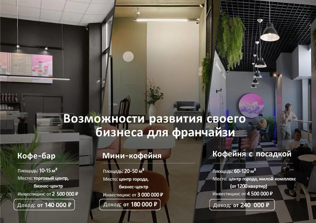 - Полноформатная кофейня с посадочными местами — 60-100 кв.м.