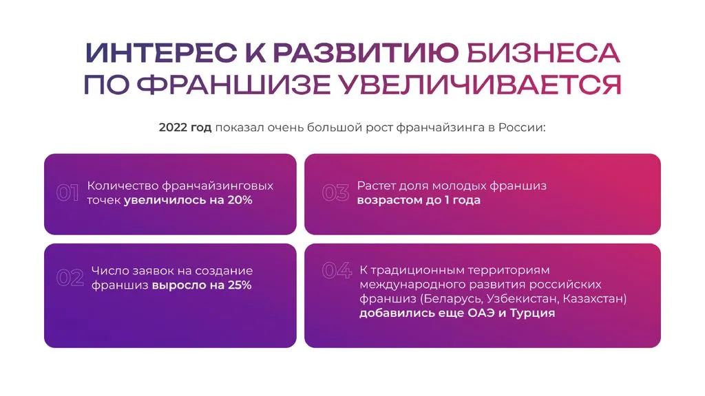 - 📦 Предоставление качественно упакованных франшиз;