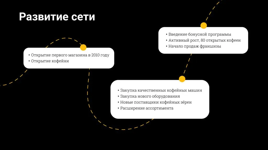 📈 Сопровождаем на всех этапах: от открытия до дальнейшего развития. Внедряем новые технологии, обновляем меню и обмениваемся опытом внутри сети.