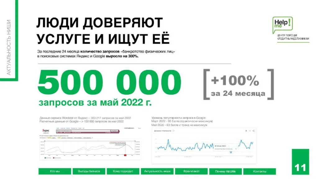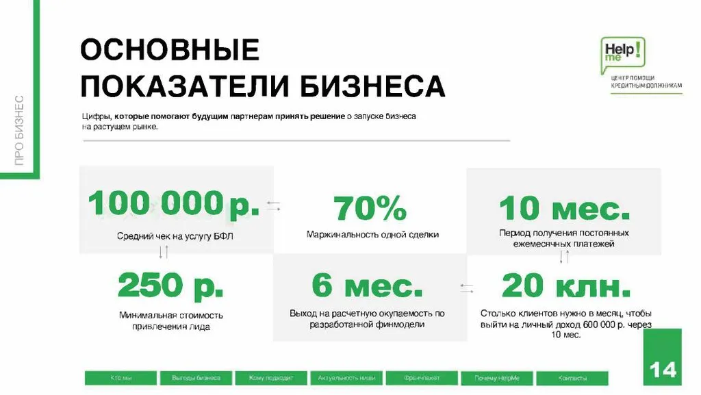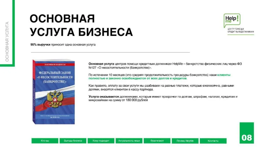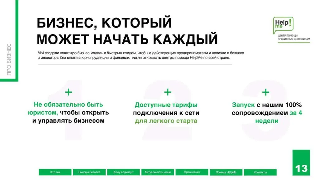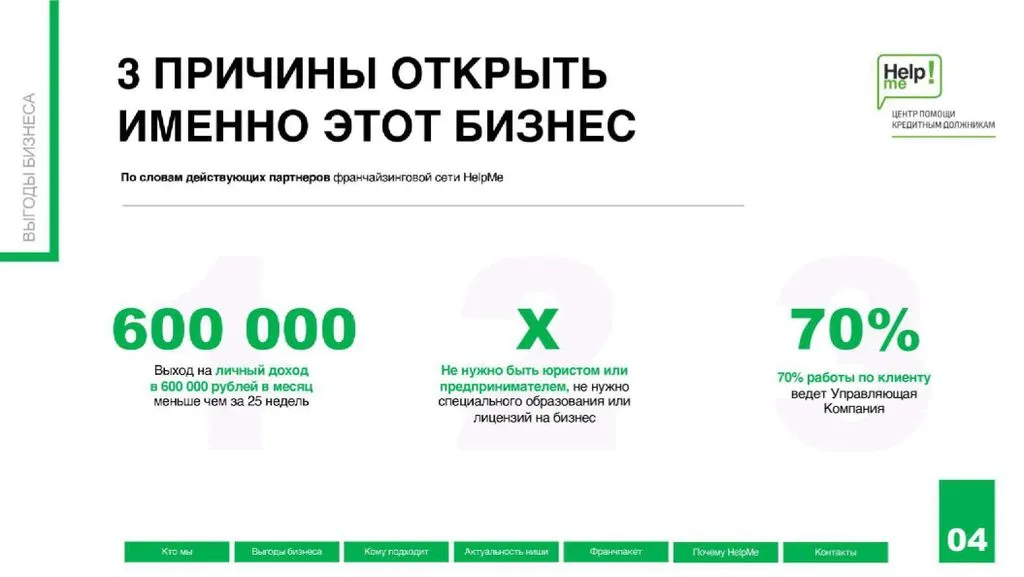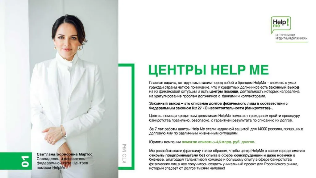 Франшиза Help Me – это возможность открыть центр помощи людям, которые не могут платить по долгам, и получать чистую прибыль от 480 000 до 1 200 000 рублей в месяц 💸.