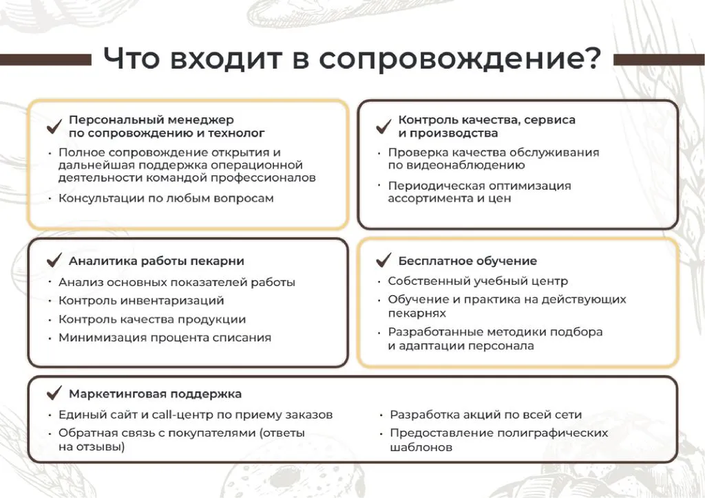 - Обучение франчайзи на действующих пекарнях.