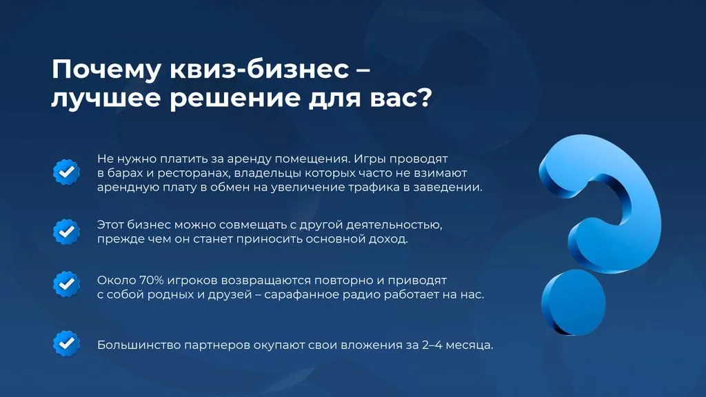 Мы погрузим вас в продуктовые и технические вопросы, научим привлекать игроков, анализировать и планировать показатели, а также масштабировать квизы на вашей территории. 🎓📊