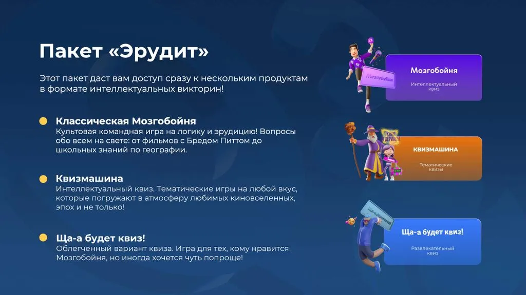 - Доступ к интеллектуальному комплексу: фирменный стиль, бренд, техническая система, база знаний и, конечно, сами игры и все необходимые материалы. 🎨🧩