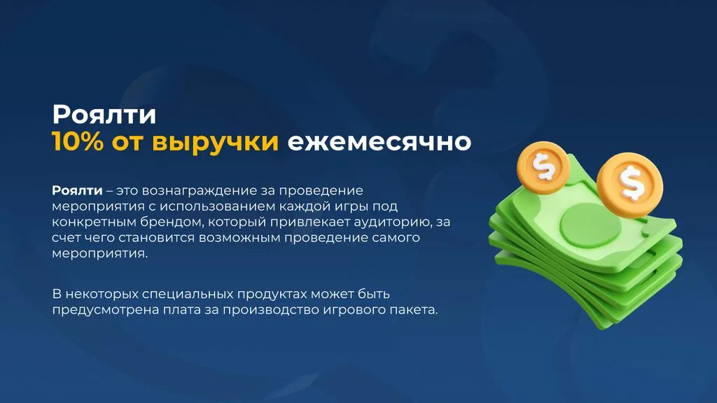 - Роялти – 10% 💰