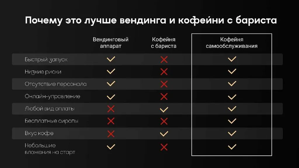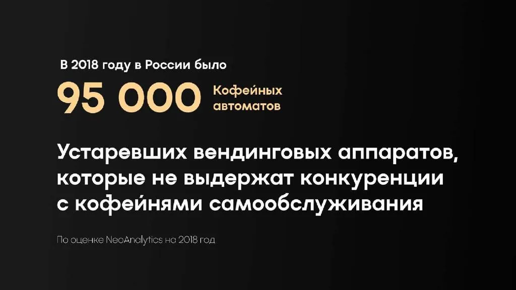 ☕ В период пандемии на рынке появилась новая ниша кофейных автоматов, которая демонстрировала стремительный рост за счёт своей надёжной коммерческой стратегии. Кофе-станции на самообслуживании превзошли вендинговые автоматы, потерявшие конкурентоспособность из-за недостаточного качества, а также традиционные кафе из-за высоких затрат и рисков.