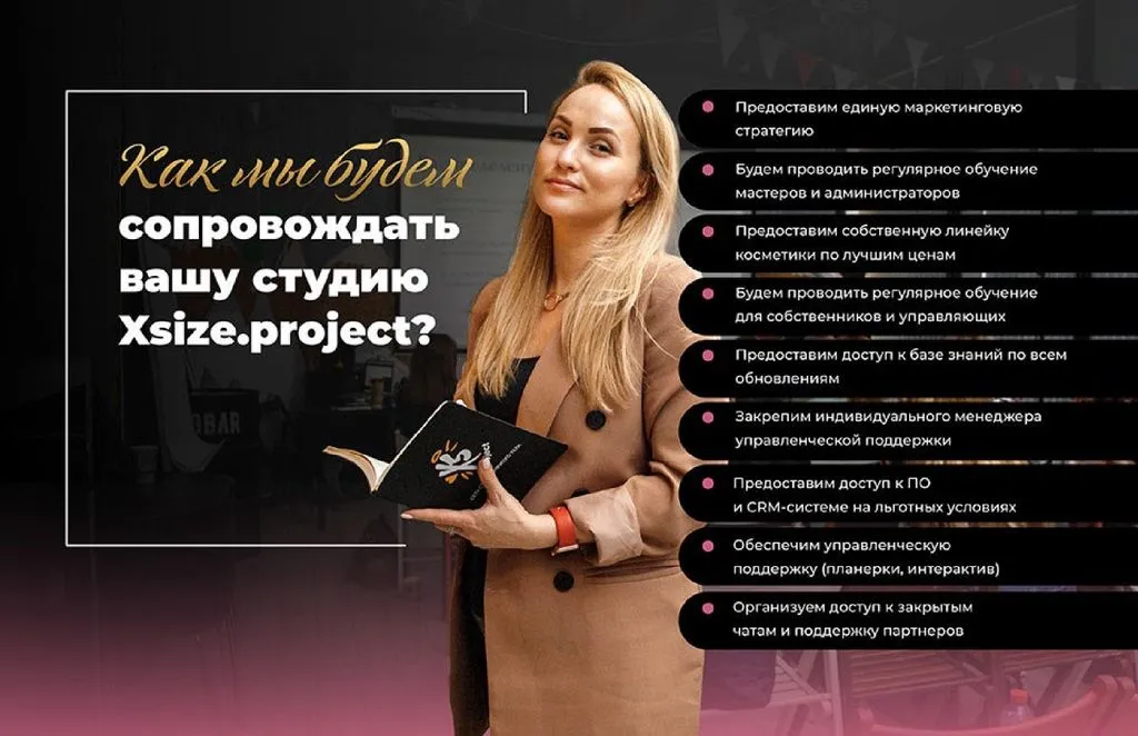 Мы проводим обучение в Xsize University. Обучаем управляющих и сотрудников, предоставляем должностные инструкции и систему мотивации. Партнёр получает полное сопровождение на каждом этапе — от подбора помещения до маркетинговой стратегии.