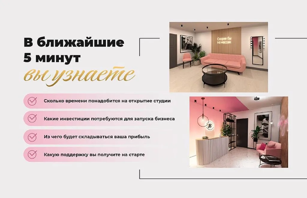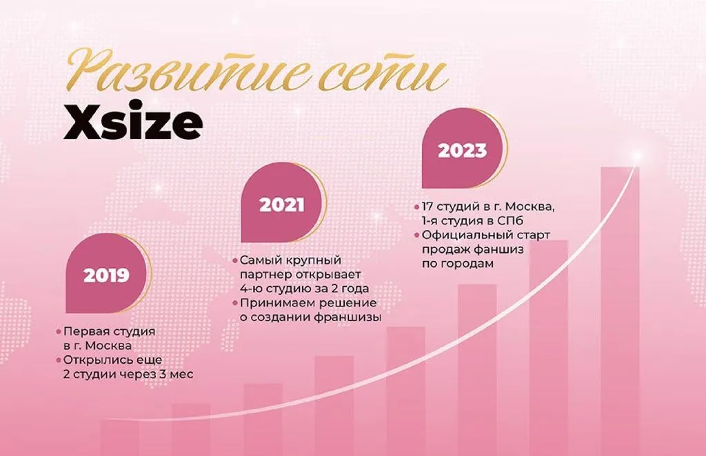 Через 3 месяца мы открыли ещё два салона рядом, более просторных и вместительных. А в 2021 году запустили франчайзинговое направление «для своих» — первыми партнёрами стали наши клиентки и сотрудницы. 💪 К 2023 году у нас уже 22 студии Xsize, а франшиза теперь доступна для всех девушек-предпринимателей. Если вы мечтаете о собственном салоне массажа или хотите сделать выгодный подарок своей половинке — присоединяйтесь к нам, мы вас всему научим! 🎓