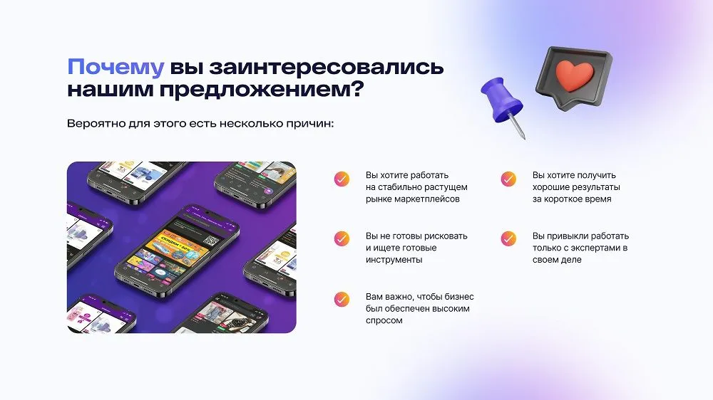 - Вы ищете стабильный бизнес, где всегда есть спрос. Маркетплейсы остаются актуальными. 📊